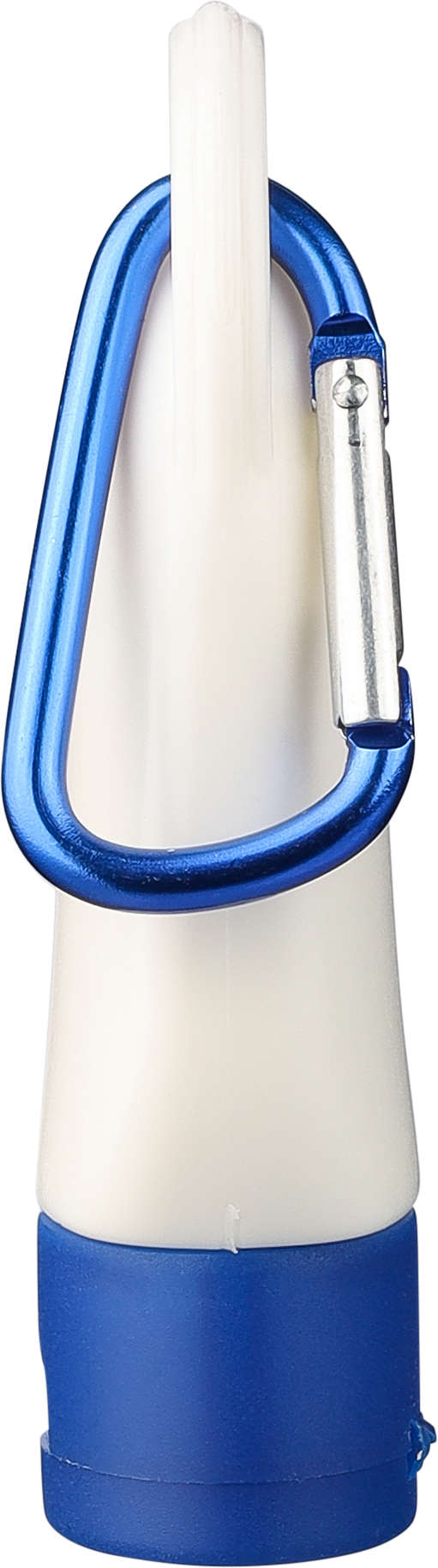 Sunscreen lotion with SPF30 protection in a 30ml tube. Features a coloured cap and matching carabiner for easy attachment.