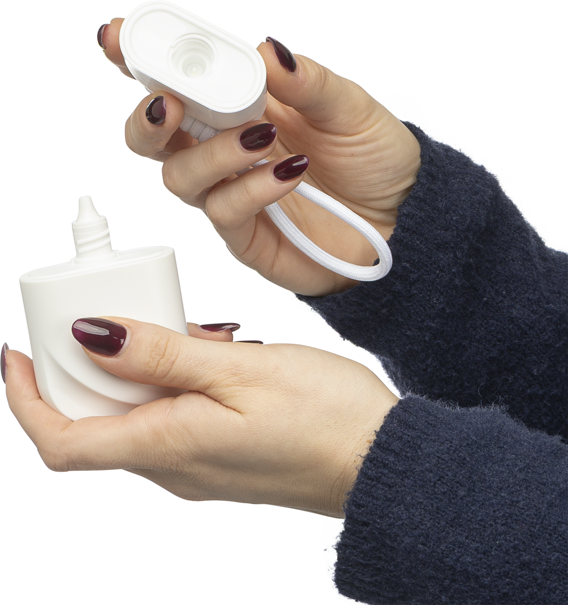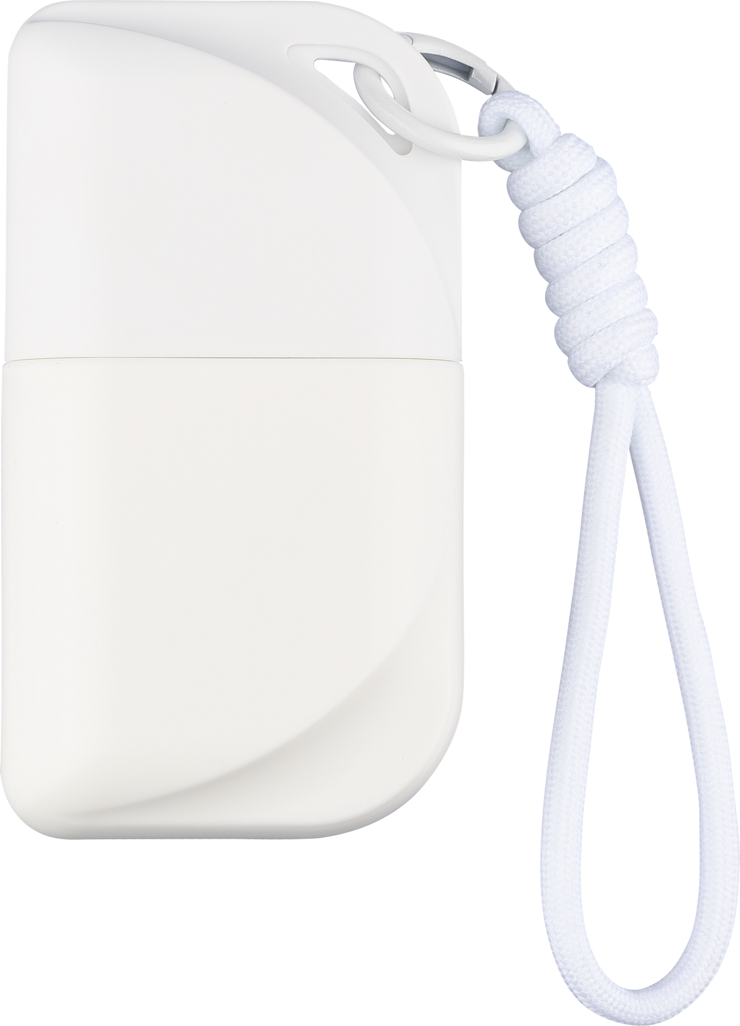 Sun lotion with SPF50 protection and matching colour polyester wrist cord with metal hook.