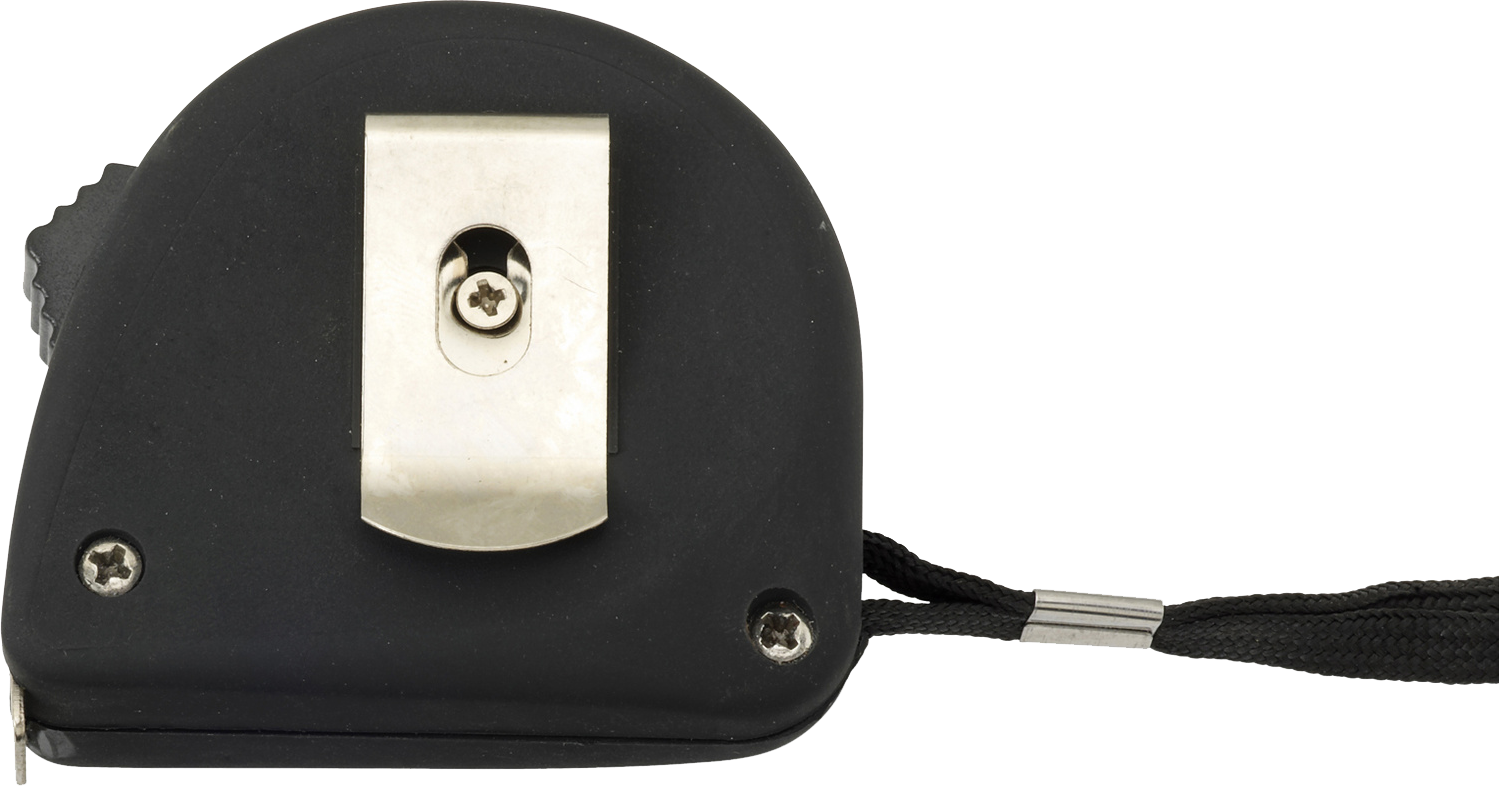 3m Plastic tape measure with a wrist strap and belt clip attachment.