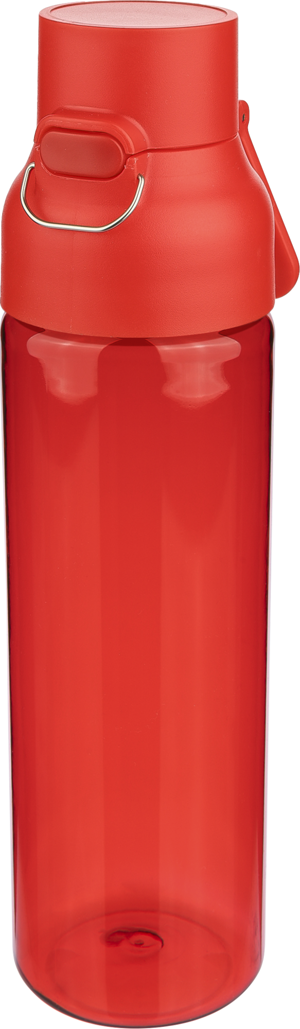 Tritan bottle with a 750 ml capacity. Includes a push button to open and a carrying handle.