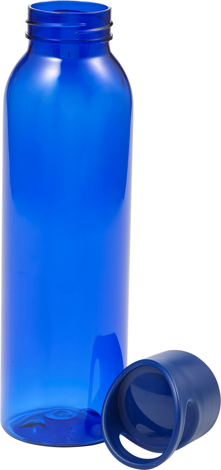 Water bottle (650 ml) with transparent coloured body and solid coloured screw cap to match.