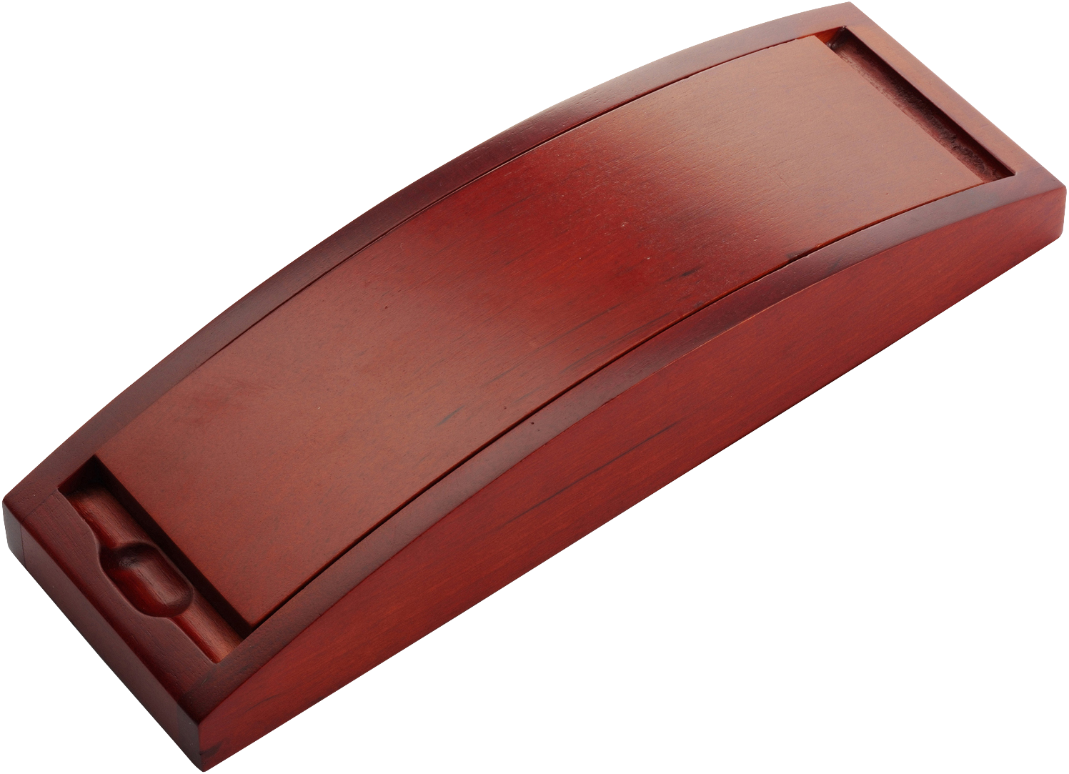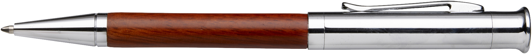 Metal/rosewood ballpen and rollerball, black ink; presented in a beech wood case.